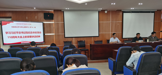 10月12日下午,学院召开党委理论学习中心组学习(扩大)会议,组织学习习近平总书记在纪念辛亥革命110周年大会上重要讲话精神。